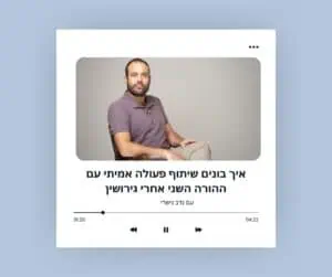 איך להפוך את תהליך הגירושין לרגע שבו אתם כהורים מראים עוצמה, מסוגלות ושיתוף פעולה – ומספקים לילדים דוגמה להתמודדות מיטיבה עם מצבי חיים מורכבים.