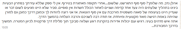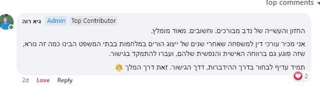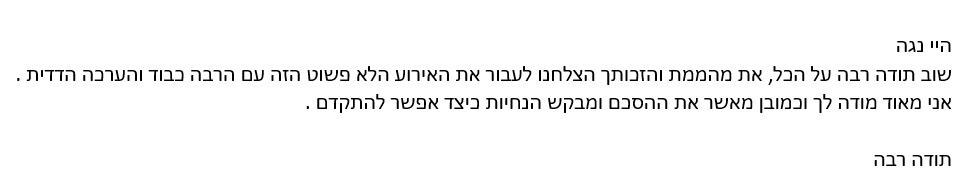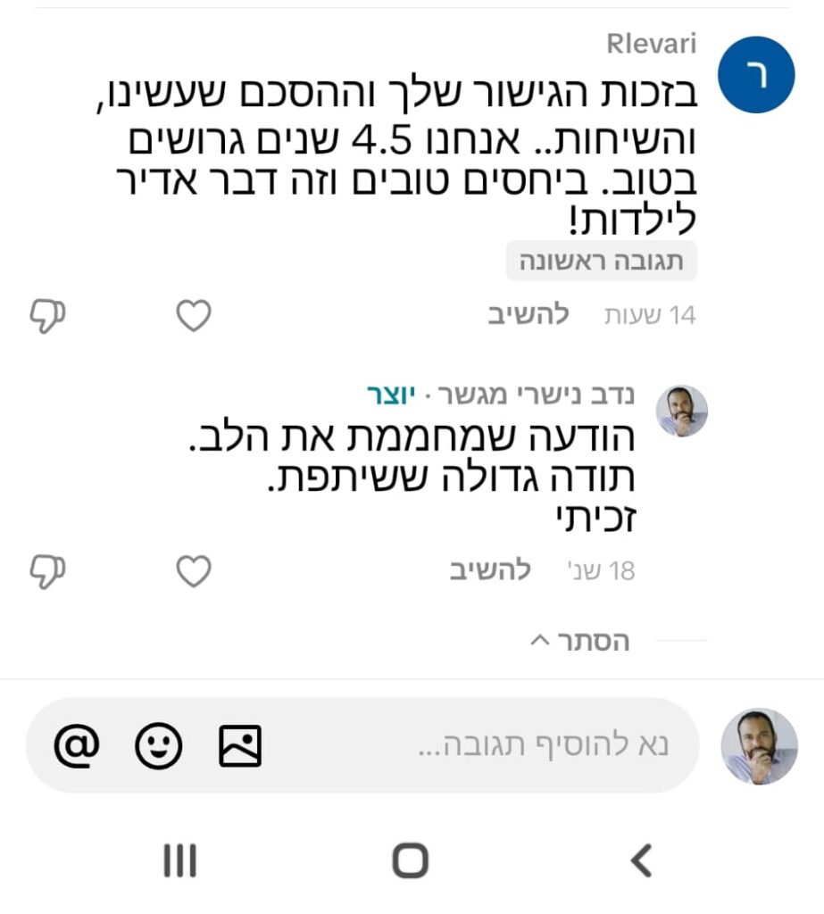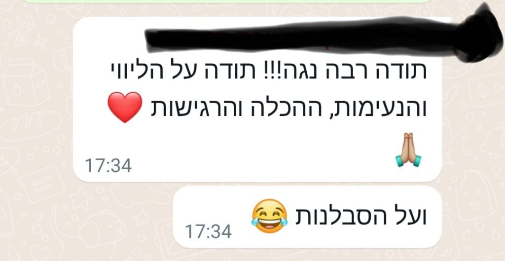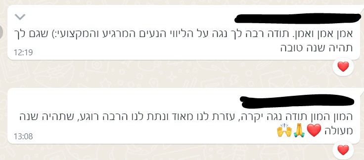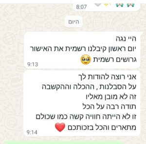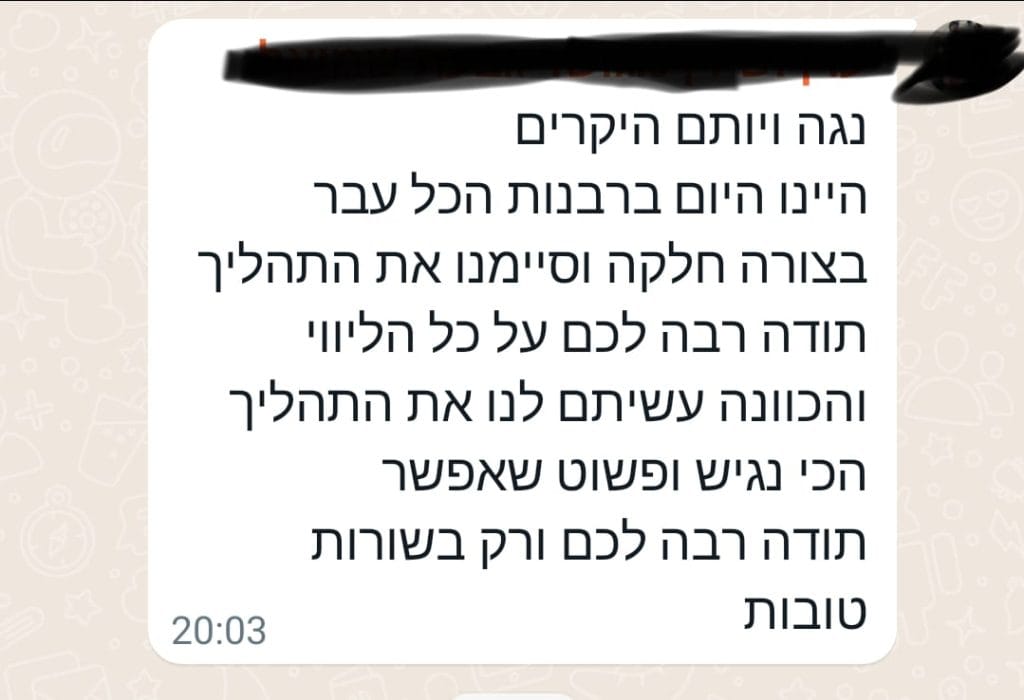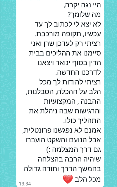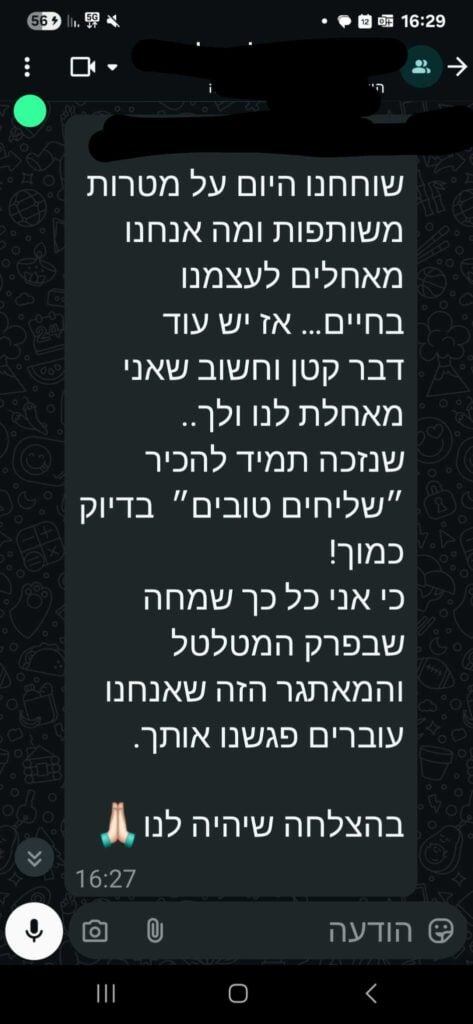 שתהיה הרבה הצלחה בהמשך הדרך ותודה גדולה מכל הלב ❤️”
