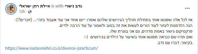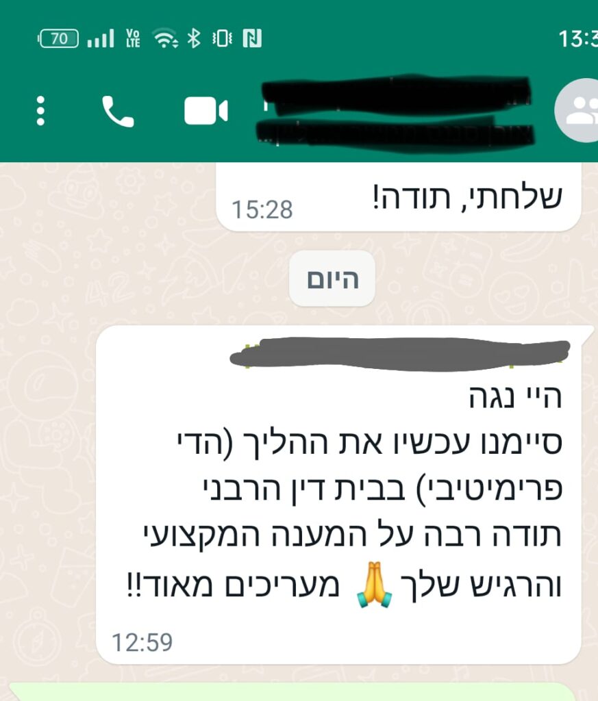 רציתי רק לעדכן שרון ואני סיימנו את ההליכים בבית הדין ובסוף ינואר יצאנו לדרכנו החדשה.